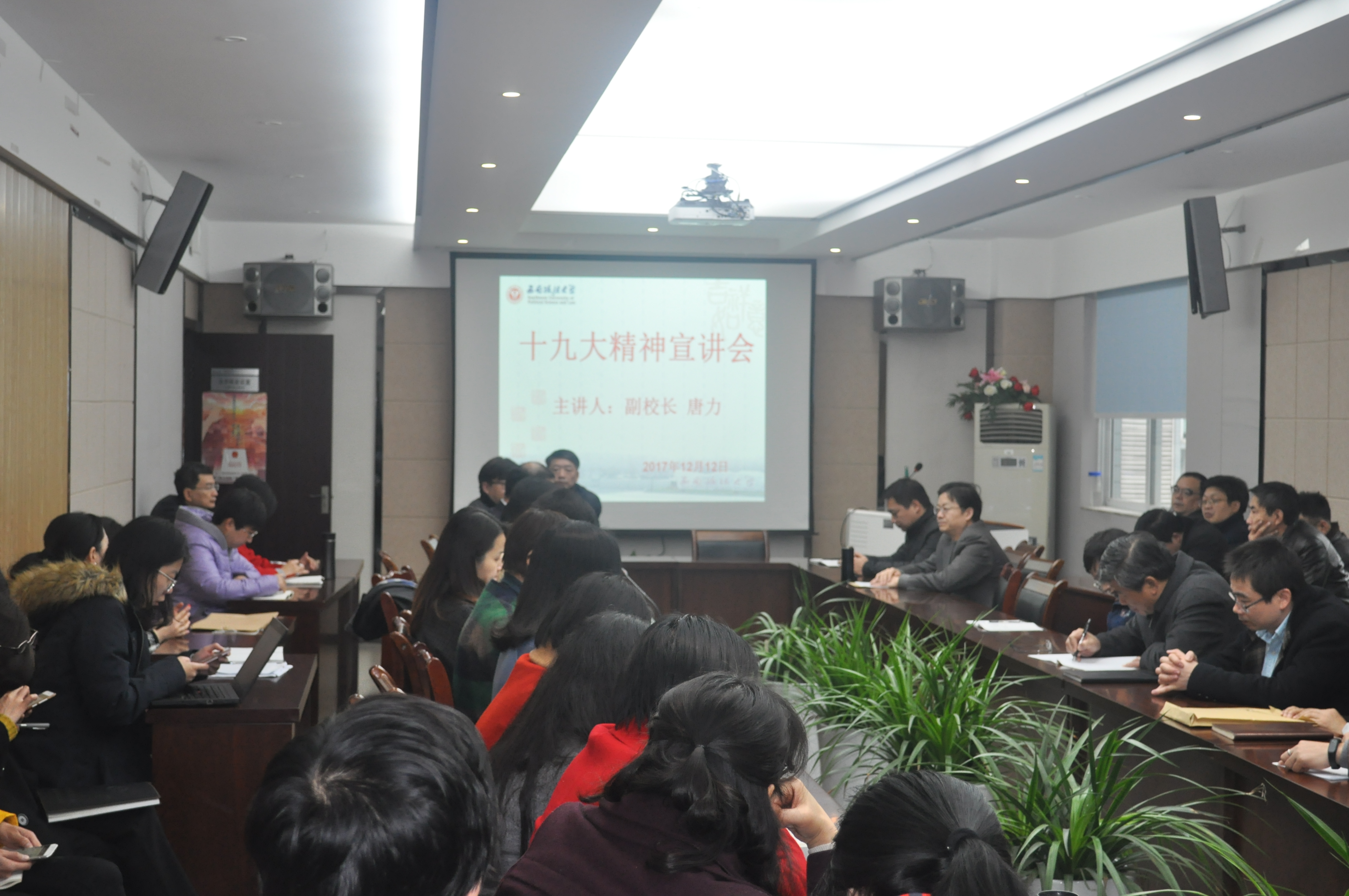 12日下午2点,法学院在敬业楼3031会议室成功召开全院教职工大会,法学院全体教职工参加了本次会议,会议由梅传强书记主持。本次大会邀请了唐力副校长为我院全体教职工做“十九大精神解读”宣讲。
