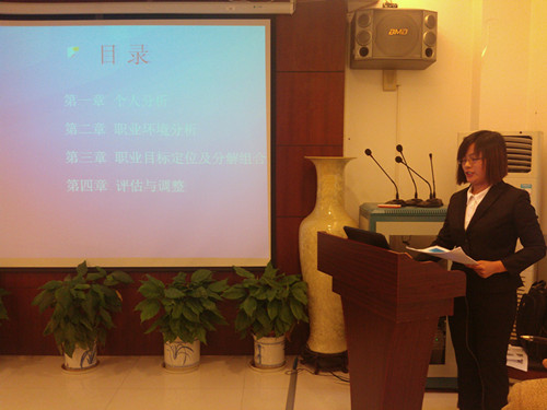 选手们依抽签决定的顺序上场,比赛内容主要是PPT展示和选手语言表达能力展示,分为选手讲述和评委提问两个环节。来自三个年级的选手的风格表现出了大学生在大学不同阶段对职业规划不同层次的认识,很具有代表性。评委们认真听取每位选手的讲述,进行评分,并在提问环节有针对性的提出问题,并在指出问题的同时给予指导。比赛中2012级的孙浪萍同学、2011级的唐乐韵同学等都给评委老师留下了深刻影响。最终评比涉及的第三部分职业规划书展示将随后由评委老师统一合议给出评分。