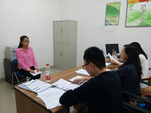由外单位从事多年人力资源管理的专家以及我校管理学院和法学院老师担任本次活动的面试官。结构化面试正式开始后,学生们五人一组地进入会议室,每人单独面试完后再由面试官对五个人统一进行点评,同学们都倍感幸运能够获得此次模拟面试机会。在外场等候被面试的同学们也有些紧张,有的在自我练习面试技巧,有的在互相交流感受,由此可见,即将进入大四的这些学生们十分重视本次模拟面试大赛。
