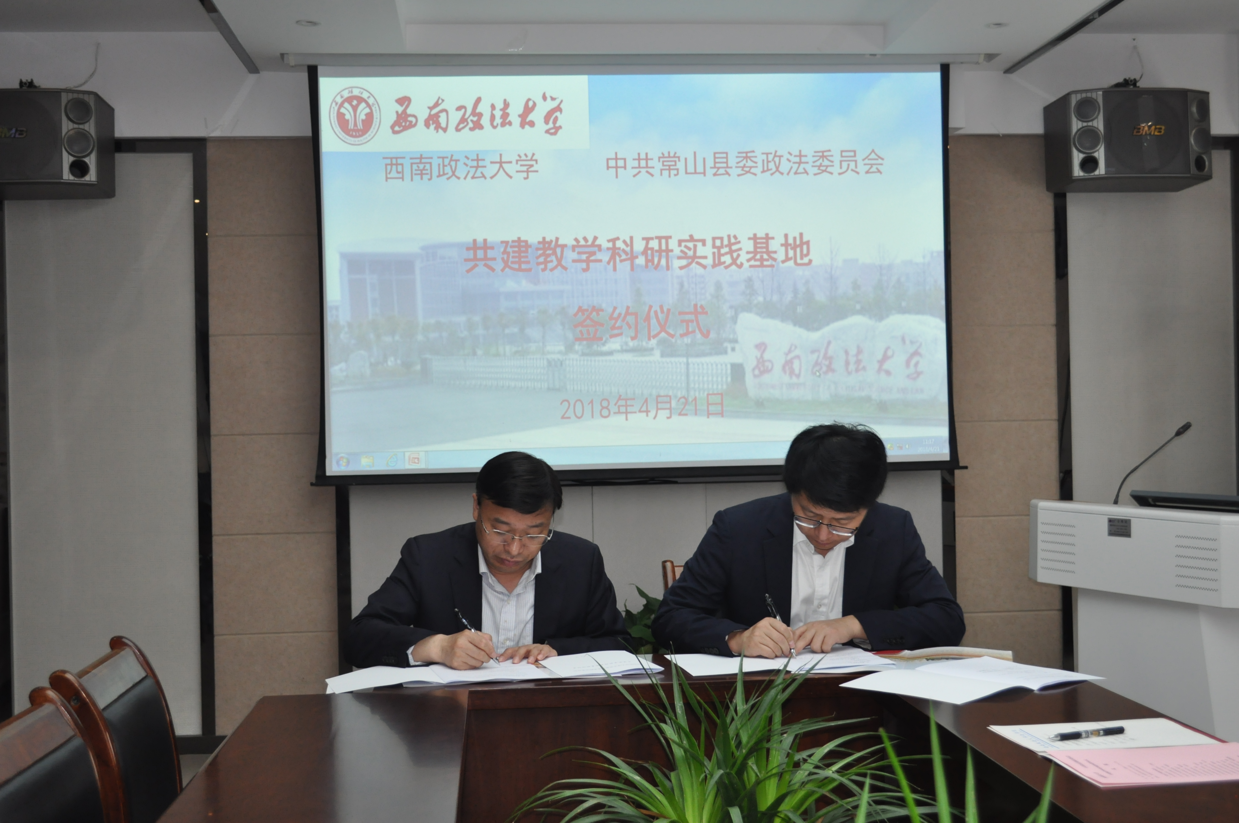 4月21日上午,西南政法大学与中共常山县委政法委员会共建教学科研实践基地签约仪式在学院3031会议室顺利举行。签约仪式由我院副院长颜飞主持。