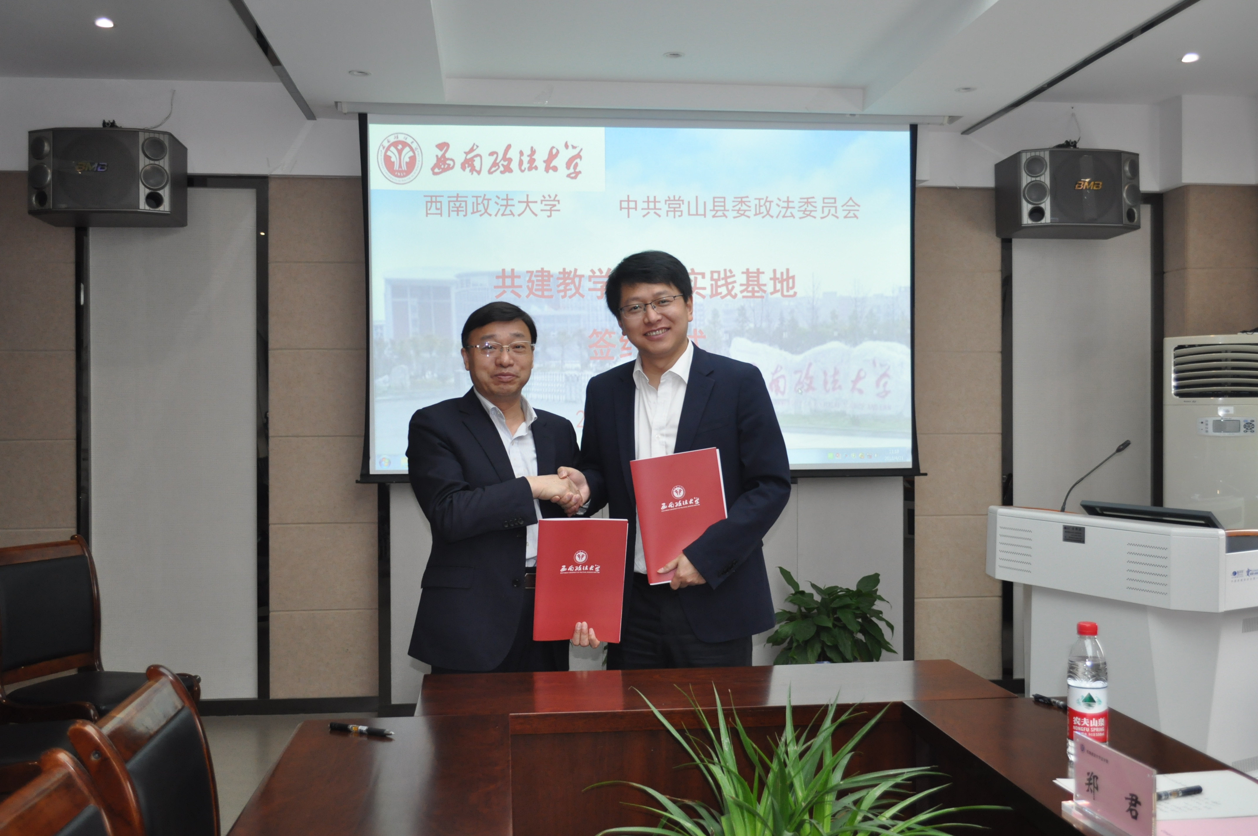 我院院长梅传强,常山县委副书记、政法委书记王郁松分别代表西南政法大学与中共常山县委政法委员会签署了《共建教学科研实践基地协议》。双方就下一步科研课题合作事宜进一步交流协商并达成初步合作意向。