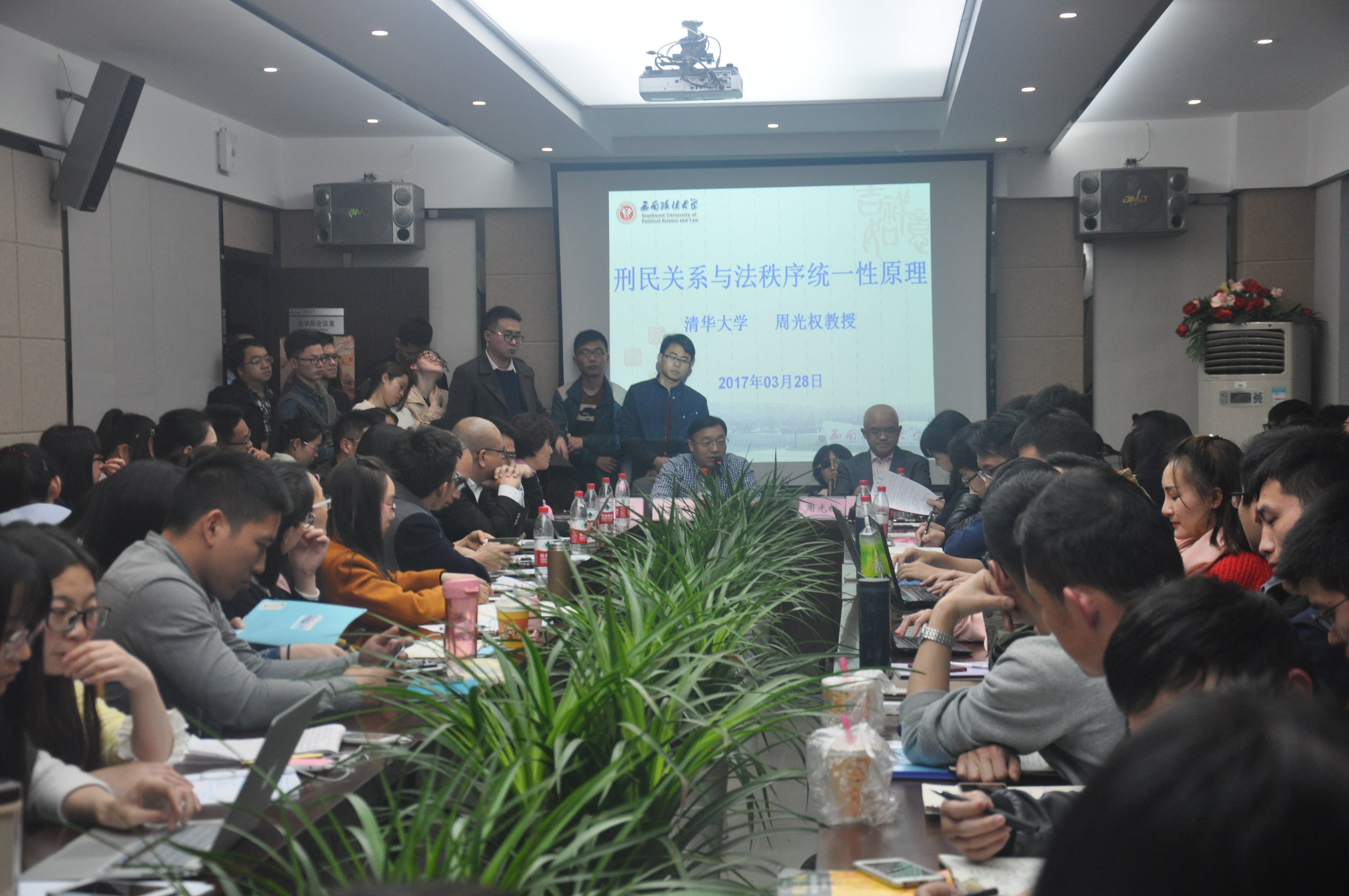 2017年3月28日晚19:00点,清华大学周光权教授在敬业楼3031会议室展开主题为“刑民关系与法秩序统一性原理”的讲座。讲座由我院梅传强教授主持,邀请了刑法教研室的众多教师作为嘉宾出席。