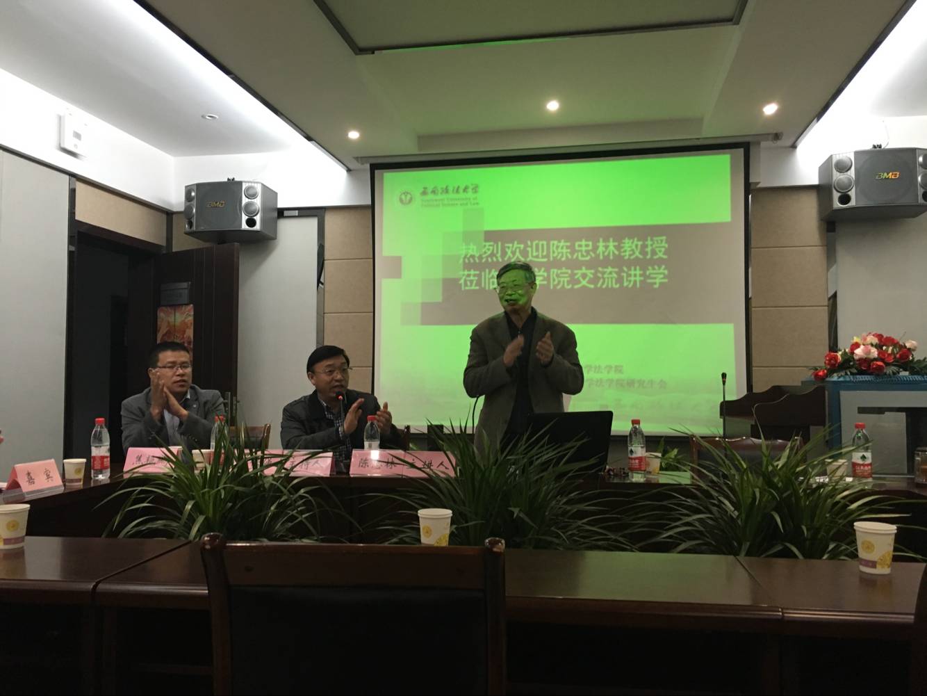 2016年11月29日晚,重庆大学教授、博士生导师陈忠林老师做客西南政法大学,于敬业楼3031会议室进行了以“我国刑法中的罪过原则”为主题的讲座。365bet即时比分党总支书记、博士生导师梅传强教授主持了该讲座,法学院高维俭教授等列席了本次讲座。