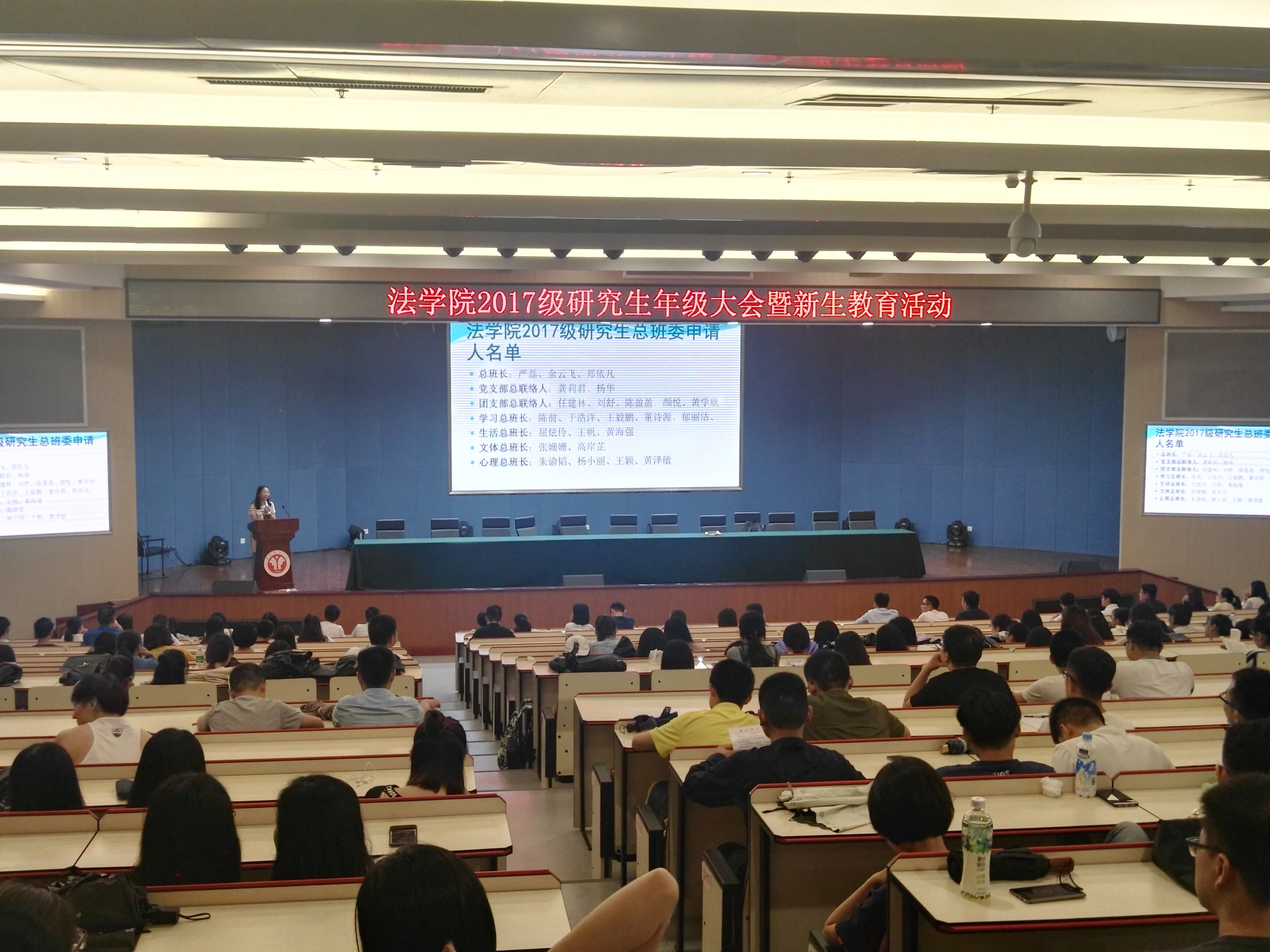 2017年9月4日,法学院2017级研究生于模拟法庭一号厅召开了第一次年级大会,本次大会由法学院2017级辅导员杨庆庆老师主持,法学院2017级研究生全体新生参与了本次大会。