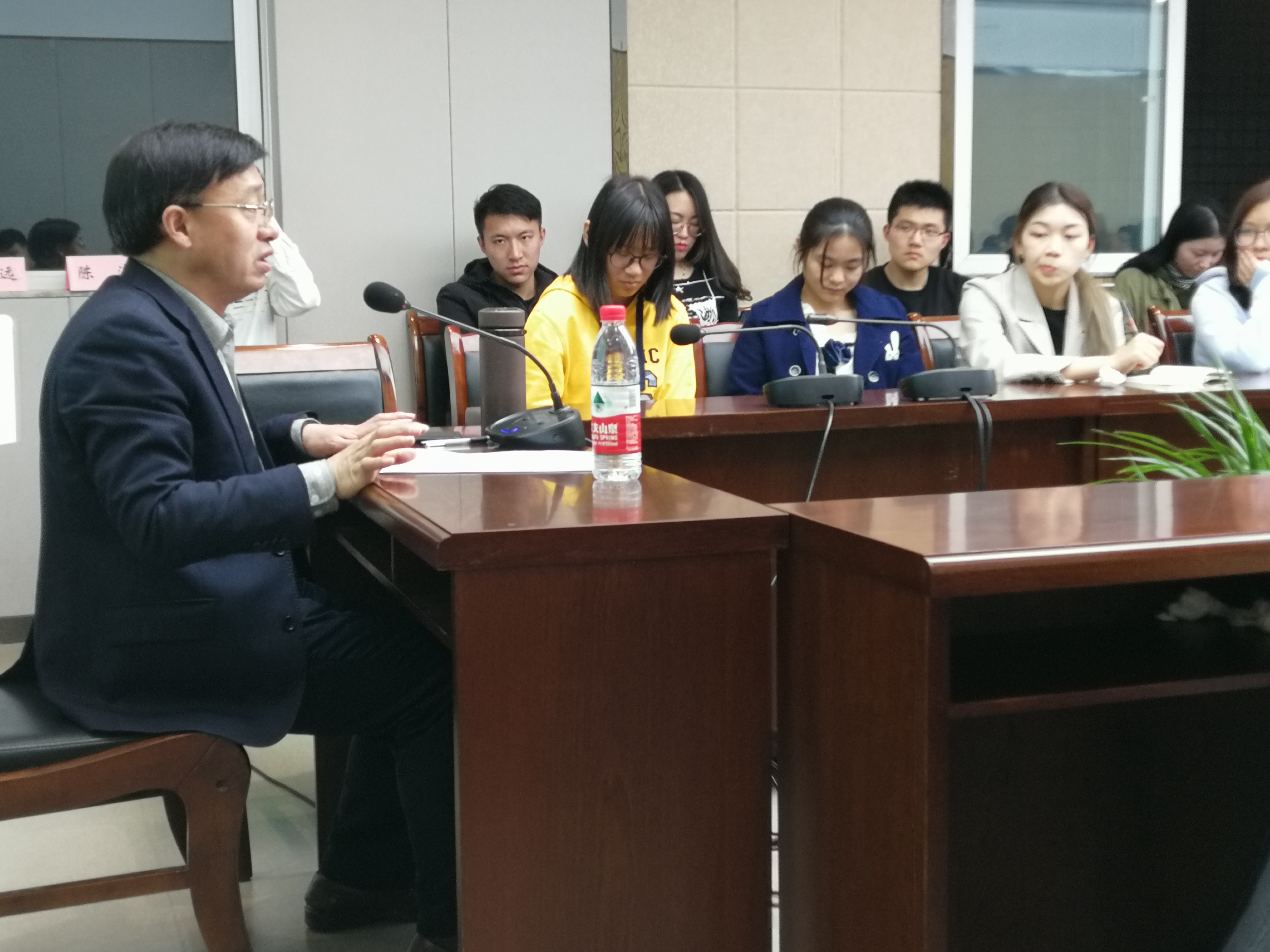 法学院2017级于2018年3月20日晚,在敬业楼3031会议室举行了“法学交流会”。本次交流会邀请到了我院院长梅传强教授,为大一新生答疑解惑为主要目的,并引导同学们找到正确、合适的法学学习方法。