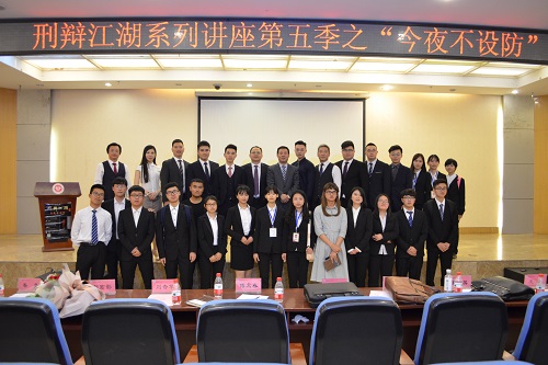 5月10日晚七点,法学院刑辩江湖系列讲座之“今夜不设防”在图书馆学术报告厅举办。讲座邀请了百君律师事务所的刘宏颖律师和宋彬彬律师作为主讲人。法学院党委副书记王晓老师,法学院学工办主任、团委书记李雪老师出席了此次讲座。